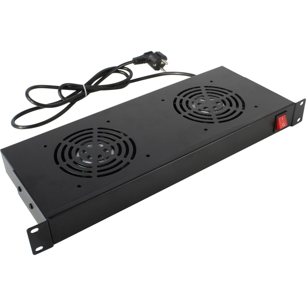 Вентиляторные модули предназначены для активного охлаждения установленного оборудования в телекоммуникационных шкафах. Они состоят из стального корпуса с кронштейнами для крепления на юнитовых направляющих 19” или на верхней крышки шкафа. Модули с цифровым датчиком показывают температуру внутри шкафа, что позволит эффективно настроить вывод тепла и соблюдать температурный режим. Тип установки: на юнитовые направляющие 19″ / 1U Количество вентиляторов: 2 Размер вентиляторов (мм): 120Х38 Номинальная сила тока (А): 0.08 Номинальная мощность (Вт): 15 Пусковое напряжение (В): 180 Скорость вращения (RPM): 2200 ± 10% Воздушный поток (CFM): 68 Уровень шума (dBa): 44 Статическое давление (мм водяного столба): 6.4 Тип подшипника: подшипник скольжения (втулка) Конструкция двигателя: бесщеточная Защита двигателя: есть (impedance protection) Диапазон рабочих температур (С°): -20 ~ +80 Допустимая влажность (%): до 80 Выключатель питания: есть Параметры электропитания: 220-240В, 50/60Гц Кабель питания: Schuko CEE 7/7 (интегрированный) Длина кабеля питания (см): 170 Материал корпуса: металл Толщина корпуса (мм): 1.2 Габаритные размеры корпуса (ШхГхВ, мм): 482 (427 без боковых скоб)х179 (170 без выключателя питания)х45 (1U) Цвет: черный (RAL9005)