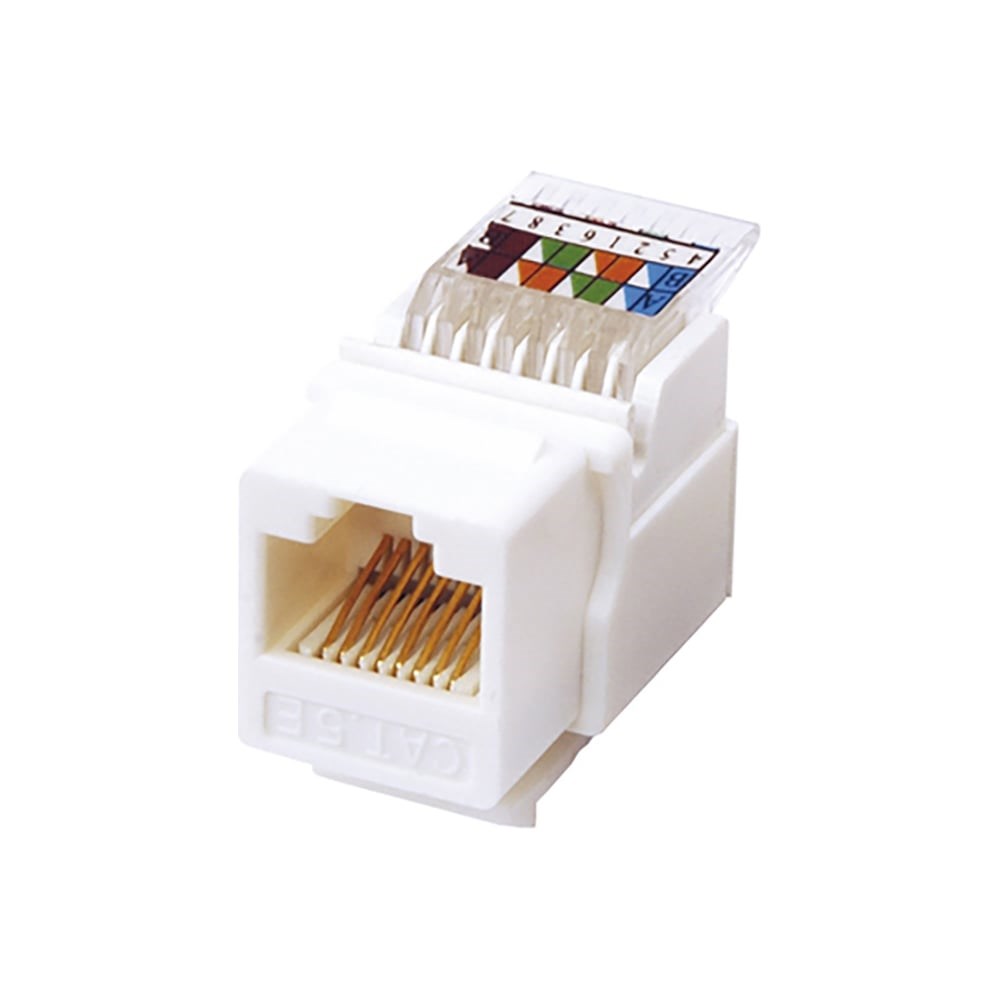 Модуль Keystone Jack применяется при прокладке компьютерных сетей в помещениях. Представляет собой защелкивающуюся вставку, устанавливающуюся на коммутационной панели или настенной модульной патч-панели. Позволяет монтировать различные типы кабелей и шнуров с проводниками, прикрепленными к электрическим и электронным устройствам. Монтаж кабели производится вручную с помощью специальных зажимов/ножей внутри корпуса изделия, без использования специальных обжимных инструментов. С одной стороны расположено гнездо с контактами, в которое вставляется кабель, обжатый разъемом RJ-45. С другой стороны находится разъем типа IDC, куда подводится информационный кабель (монтаж производится с прорезанием изоляции). Модуль подходит для кабелей категории 5е, обеспечивающих скорость передачи данных до 1000 Мбит/с.