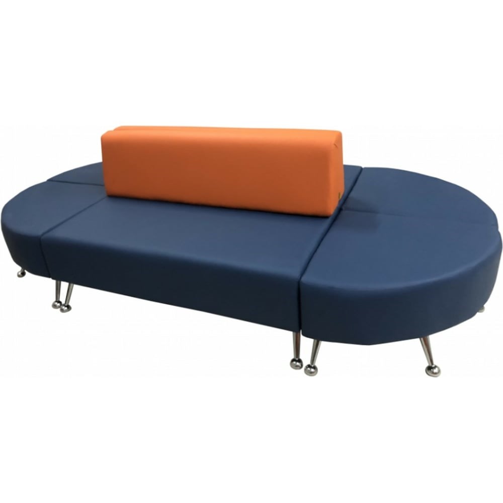 Модульный диван Мягкий офис Вайт 6 секций оранжево-синий ВТ2301ОРСН предназначен для офиса или дома. За счет прочного каркаса прослужит долгое время. Благодаря мягким сидениям удобен в использовании. Выполнен в современном дизайне, поэтому впишется в любой интерьер. Дополнительные технические характеристики: Тип: модульный. Механизм: нет. Ящик для белья: нет. Габариты (в/ш/г): 78x286x148 см. Размер посадочного места (в/ш/г): 45x286x52 см. Наполнитель: высокой плотности ППУ. Ножки: металлические хром изогнутые, 20 см.