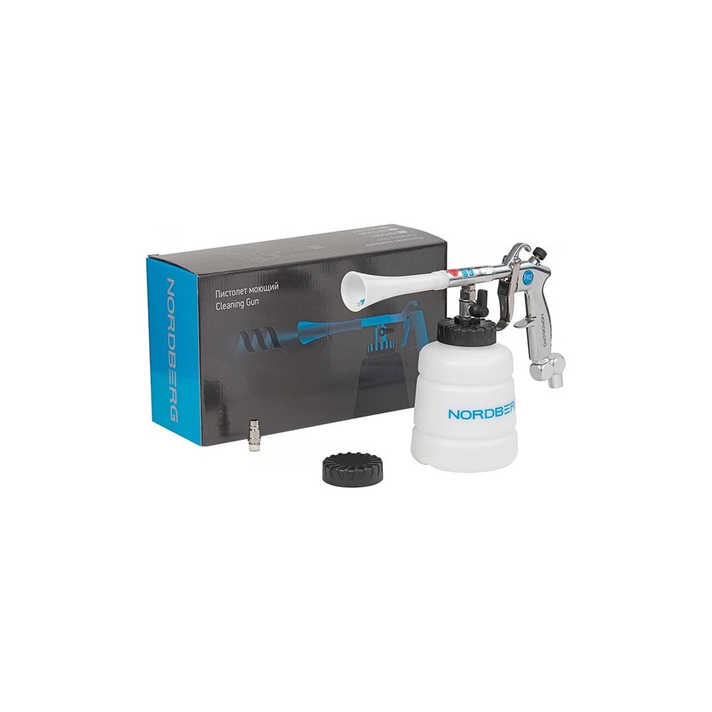 Пистолет моющий с гибким вращающимся распылителем NORDBERG NP9007 – профессиональное оборудование для чистки салонов легковых автомобилей, среднего коммерческого и грузового транспорта. ФУНКЦИОНАЛ Благодаря гибкой трубке-распылителю, описывающей круговые движения с помощью сжатого воздуха, и моющей жидкости эффективно вычищаются любые поверхности интерьера автомобиля: кожа, текстиль, пластик, резина и пр. УДОБСТВО ИСПОЛЬЗОВАНИЯ Гибкий заборный шланг внутри бачка и утяжелитель на его конце позволяют работать с пистолетом под любым углом, гарантируя постоянное попадание моющего средства в распылитель Эргономичная конструкция и небольшой вес Простое, интуитивно понятное использование УНИВЕРСАЛЬНОСТЬ Торнадор может применяться как для локального удаления загрязнений, так и использоваться при полной химчистке салона. Многофункциональный моющий пистолет NORDBERG NP9007 – высококачественное оборудование для решения различных задач детейлинга, позволяющее эффективно, легко и быстро удалять загрязнения.