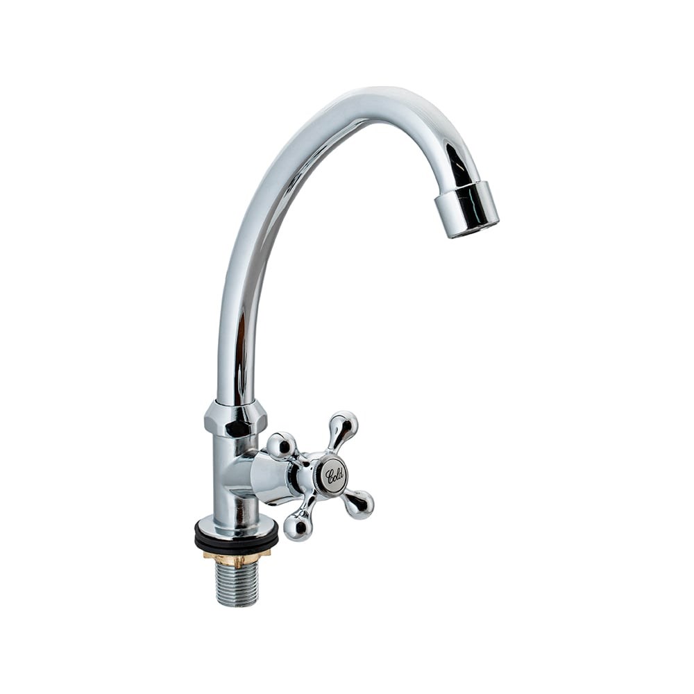 Моно-смеситель для кухни Ekko с гайкой E41008 предназначен для крепления на раковину или прилегающую поверхность столешницы. Крепится с помощью накидной гайки, которая накручивается на нижнюю часть цилиндрического корпуса самого крана, которая располагается под раковиной. Длина излива подходит для большинства бытовых кухонных моек. Высокий поворотный излив оснащен аэратором, который существенно понижает уровень шума. Управление водой производится при помощи керамической кран-буксы размером 90 мм. Продукция производится на современных станках с числовым программным управлением. Высокоточные линии литья и обработки, а также использование современных материалов позволяют гарантировать высокий уровень качества продукции