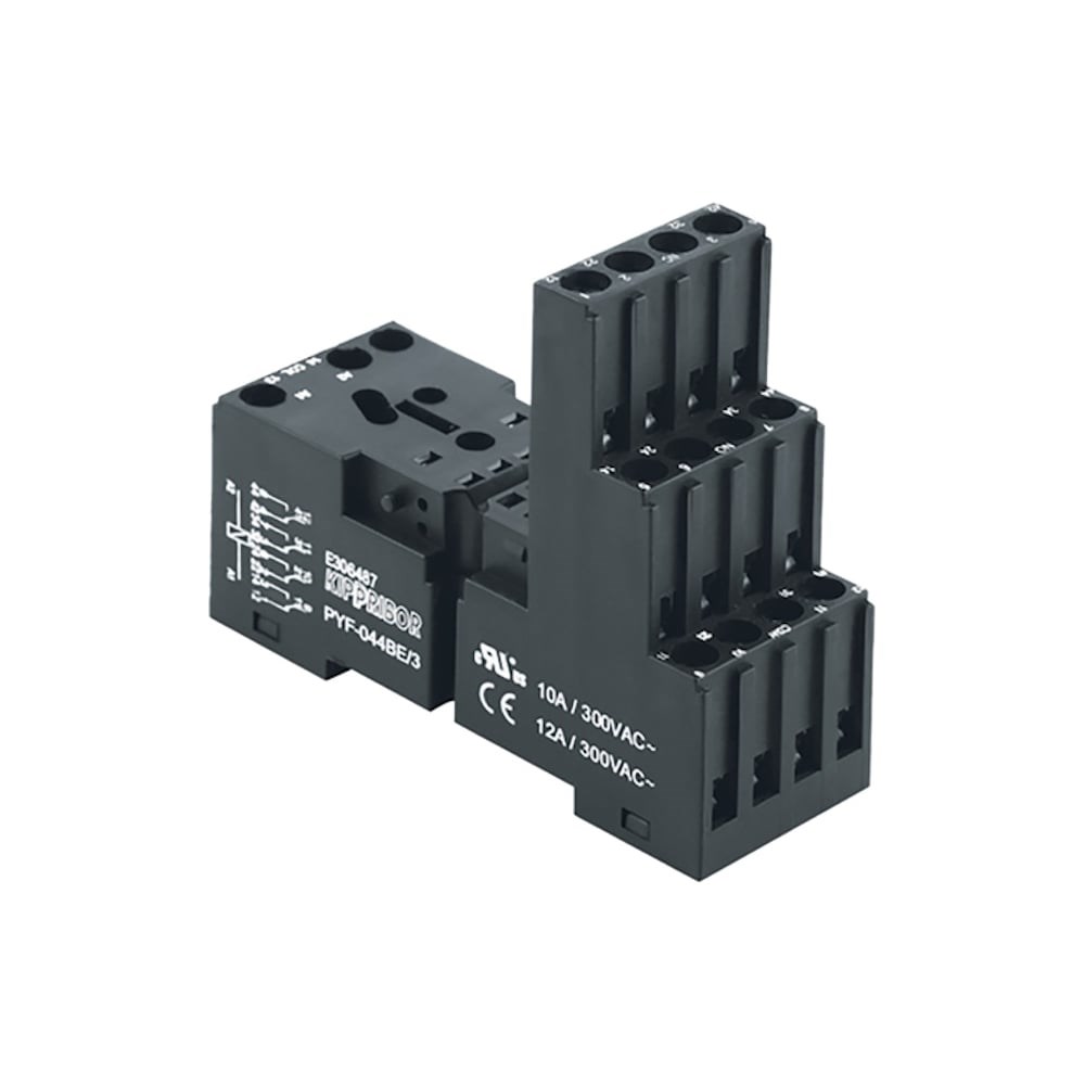 Монтажная колодка KIPPRIBOR PYF-044BE/3 артикул 00000078987 предназначена для установки на стандартную DIN-рейку или плоскость 4-контактных промежуточных реле различных производителей. Изготавливается из негорючего, прочного и упругого материала (ПА66 + графит), устойчивого к ошибкам при монтаже и эксплуатации. Дополнительно можно приобрести модуль LED-индикации LM-EN или LM-CF и пластмассовый удерживающий зажим BS-4/36P для фиксации промежуточных реле высотой 36 мм.