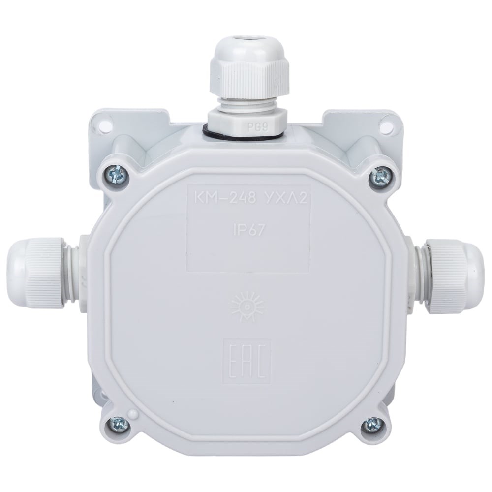 Характеристики:Диаметр провода обеспечивающий степень защиты, мм: от 4,5 до 10Климатическое исполнение: УХЛ2Количество винтовых зажимов: 4 группы по 2 шт.Количество выходов: 3 штНоминальное напряжение, В: 220 .. 250Площадь поперечного сечения присоединяемых к контактным зажимам медных проводов: от 1,5 до 2,5 мм²Предназначена: для установки как внутри так и снаружи помещений и разводки проводов с применением контактных зажимов при открытой электропроводкеРазмеры коробки, мм: 75,7х75,7х44,5Степень защиты: IP67Тип кабельного ввода: PG-9Установочные размеры (расстояние между отверстиями), мм: 73,5±0,2х73,5±0,2Габариты: 130x104x44 ммМасса: 0.134кг