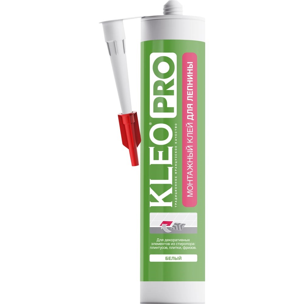 Клей монтажный KLEO PRO ДЛЯ ЛЕПНИНЫ – однокомпонентный водный монтажный клей на основе стиролово-акриловой дисперсии. Клей для лепнины не содержит растворителей, применяется внутри и снаружи помещений на пористых и непористых поверхностях. Клей универсальный предназначен для приклеивания архитектурных кессонов, карнизов, розеток и иных декоративных элементов из стиропора и дюрополимера (в том числе плинтусов напольных широких).Рекомендуемые основания: гипсовые и цементные штукатурки, кирпич, бетон, гипсокартонный лист (ГКЛ), древесина, ДСП, выравнивающие шпаклевки на дисперсионной или минеральной основе.Клей герметик имеет консистенцию пасты и белый цвет. Сила склеивания 70 кг/м². После отверждения выдерживает температуру от -10С до +80С. Легко очищается водой. Время позиционирования поверхностей 10 минут. Клей монтажный белый можно окрашивать любыми типами красок. Влагоустойчив после отверждения.Монтажные клеи KLEO PRO обладают отличными клеящими свойствами и высокой температурной устойчивостью, что позволяет использовать их в самых широких областях.Свойство быстрого схватывания каждого монтажного клея KLEO PRO позволяет оперативно склеить вертикальные поверхности без необходимости долго прижимать их. Невысокий расход клея дает возможность нанести меньшее количество пасты на склеиваемые поверхности .Жидкий монтажный клей не нарушает поверхность склеивающихся предметов, не подвержен коррозии и удобен в применении. Воспользуйтесь строительным пистолетом для жидких гвоздей.
