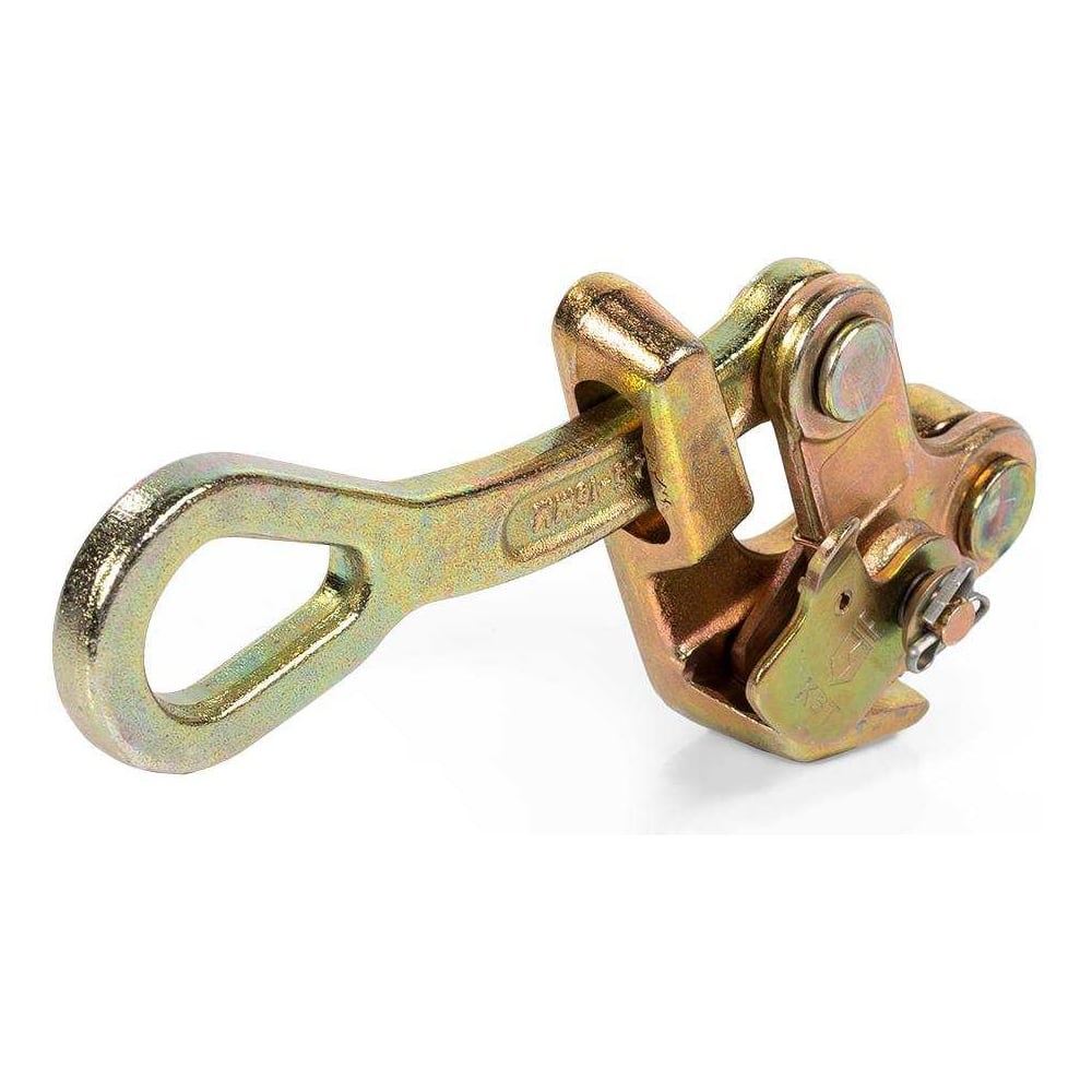 Монтажный зажим лягушка КВТ МЗ-16 61845 применяется при регулировке стрелы провеса на линиях СИП путем захвата за несущую жилу. Устройство рычажного типа преобразует усилие тяги в усилие захвата. Зажим имеет анодированное покрытие, изготовлен из прочного материала. Диаметр кабеля - 2.5-16 мм.