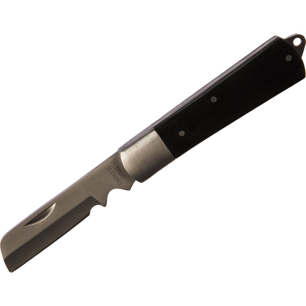 Нож монтерский КВТ НМ-10 77663 - складной инструмент с прямым лезвием и дополнительной зоной для зачистки жил от окисной пленки. Применяется для удаления изоляции и оболочки кабелей. Лезвие ножа выполнено из нержавеющей стали твердостью HRC 51-55, что гарантирует долгий ресурс работы инструмента. Для удобства хранения и транспортировки предусмотрено отверстие на рукоятке для крепления карабина.