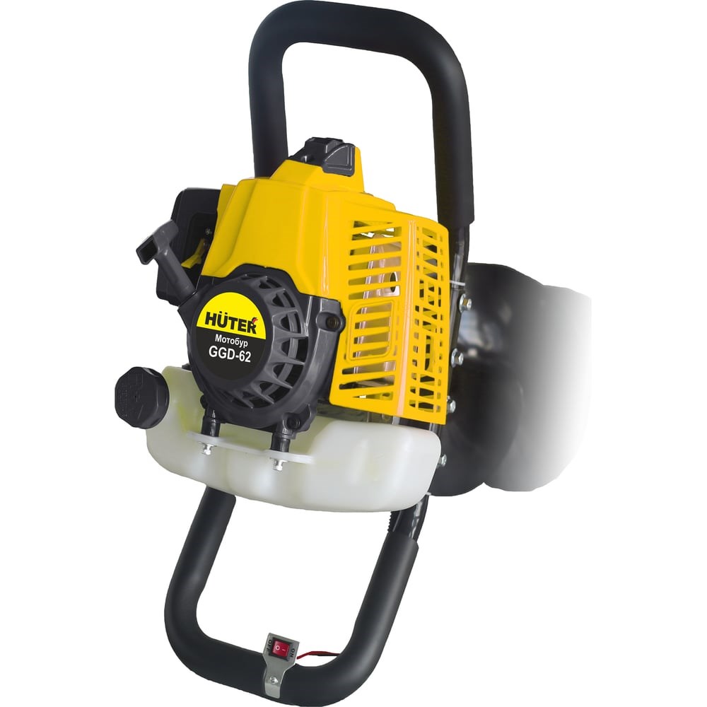 Мотобур HUTER GGD-62 – устройство, нашедшее широкое применение в строительных работах, на дачных участках и в зимней рыбалке. Это самая мощная модель в линейке, что позволяет получить уверенность в том, что аппарат справится с твердым льдом и грунтами.Область применения устройства:подготовка отверстий для установки свай;подготовка лунок для посадки деревьев;монтаж заборных столбов;установка громоотводов;сверление лунок во льду.Одноцилиндровый двухтактный двигатель объемом 63 см³ и мощностью в 2,4 кВт с воздушным охлаждением работает на топливной смеси АИ92 и специального масла для 2Т моторов.Особенности HUTER GGD-62:поршневая группа обладает повышенным сроком службы;система легкого старта обеспечивает быстрый запуск мотора;высокая мощность двигателя;управление выведено на прорезиненную рукоятку.возможность работать с устройством при низких температурах;возможность использовать буры диаметром до 300 мм. Кроме этого, шнек можно удлинить.Поставляется мотобур в сборе в коробке без шнека, шнек нужно приобретать отдельно.