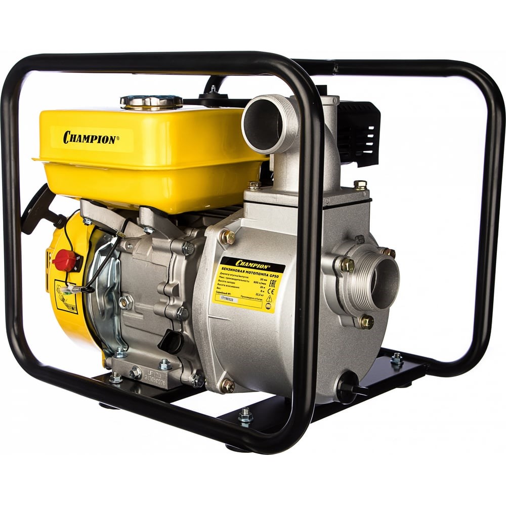 Мотопомпа CHAMPION GP50 оснащена двигателем объемом 208 см3, производительность которого 600 литров в минуту. Мотопомпа оборудована обратным клапаном, который предотвращает всасывание воды из корпуса насоса. Это способствует достаточному количеству воды в корпусе насоса для следующего запуска помпы.
