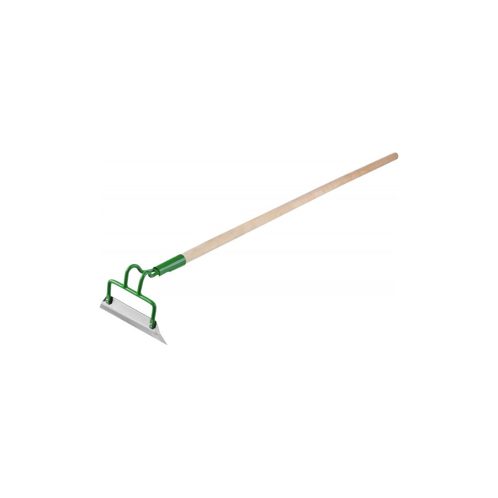 Мотыга из нержавеющей стали РОСТОК с черенком, 200х50x1290 мм 421574 пригодится для обработки почвы и ухода за садовыми растениями. С ее помощью можно избавляться от сорняков, окучивать грядки, формировать клумбы. Рабочая часть отличается прочностью и долговечностью. Тулейка имеет порошковое покрытие для устойчивости к коррозии. Деревянный черенок с гладко отшлифованной поверхностью обеспечивает удобный хват.