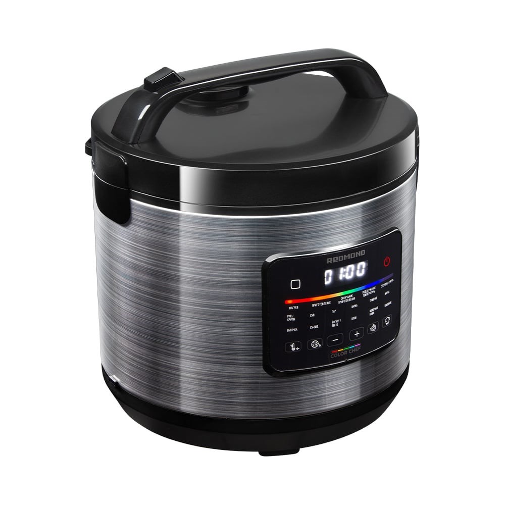 Мультиварка REDMOND MC109 — современная модель со съемной крышкой и цветовой индикацией этапов готовки Color Chef. Прибор имеет сенсорное управление и 14 автоматических программ, чтобы вы могли легко радовать семью разными блюдами. Вам не нужно контролировать процесс — достаточно выложить продукты в чашу и нажать кнопку выбранной программы. Color Chef Цветовая индикация всех этапов приготовления еды: красный — начинается нагрев до нужной температуры; оранжевый —приготовление блюда; зеленый — завершение программы приготовления; синий — поддержание заданной температуры готового блюда; фиолетовый — включен таймер отложенного старта. Не нужно постоянно находиться на кухне, контролируя процесс приготовления. Загрузите ингредиенты в чашу и включите подходящую автопрограмму. Прибор самостоятельно задаст оптимальную температуру для жарки, варки, тушения, томления, выпечки. Также есть программы для супа, риса, готовки на пару, плова, йогурта или теста, молочной каши, су-вида, каш на воде. А еще ручная настройка температуры и времени. Чувствительные сенсорные кнопки реагируют на легкое нажатие. Управление понятное — вы быстро научитесь пользоваться мультиваркой. Японское антипригарное покрытие DAIKIN® — современный безопасный материал, обладающий повышенной устойчивостью к температурным перепадам. В чаше с таким покрытием можно делать зажарку почти без масла, поэтому она получится более диетической. Чашу можно мыть мягкой губкой под теплой проточной водой.