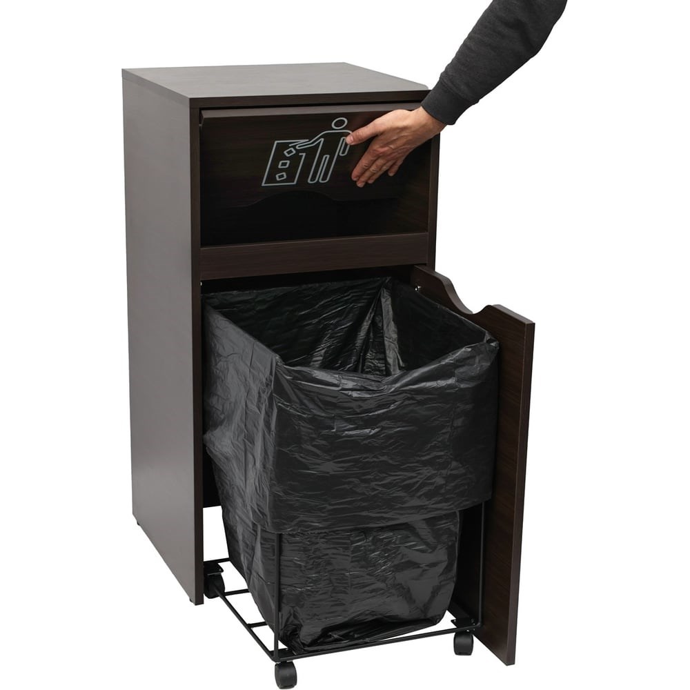 Мусорный контейнер для фудкорта Оди 1000 цвет венге 5190008UOVe предназначен для сбора отходов. Имеет выдвижную конструкцию, что облегчает опорожнение контейнера. Выполнена из прочного ЛДСП, поэтому устойчив к коррозии и механическим воздействиям. Подвесная крышка позволяет сохранять руки чистыми.
