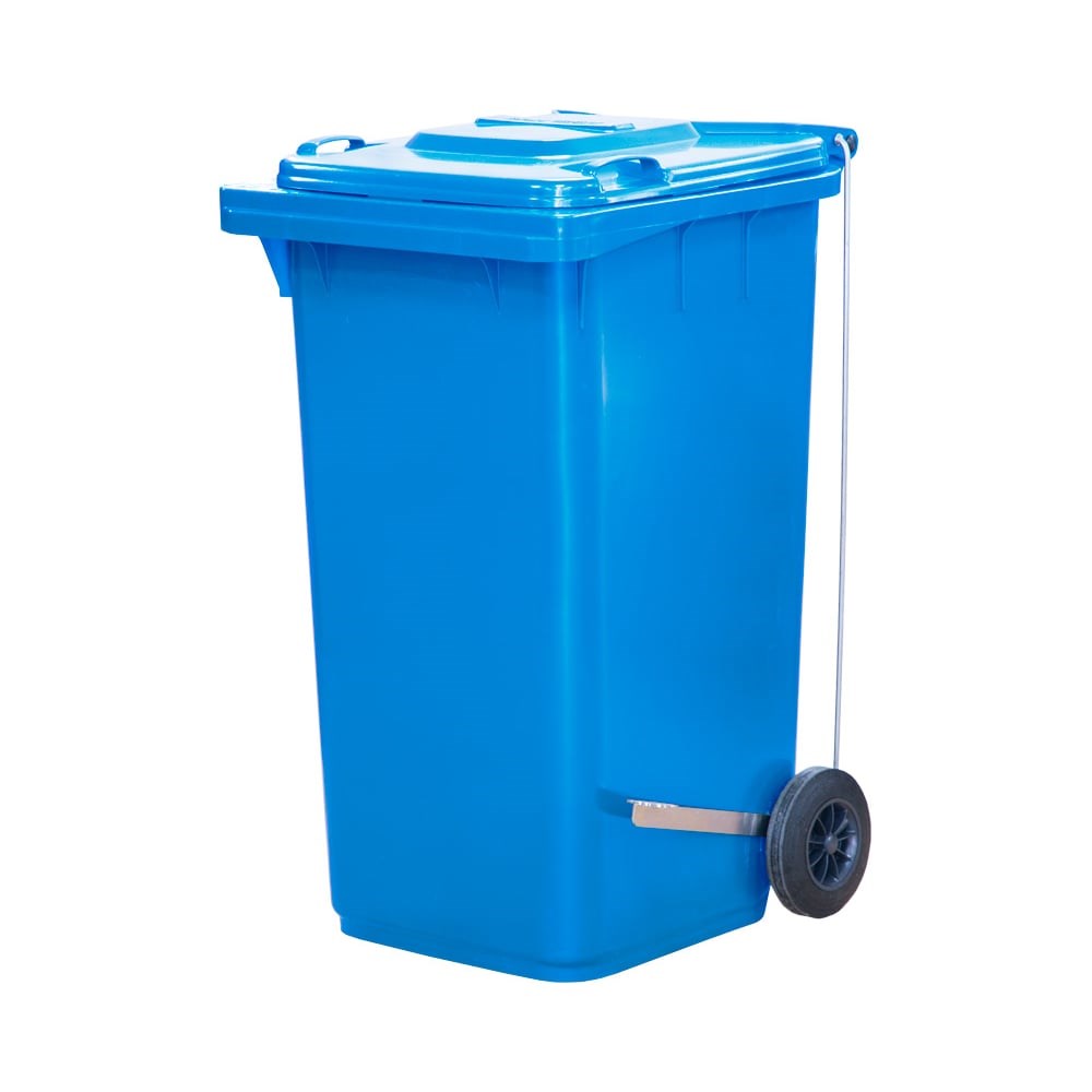 Мусорный контейнер Тара.ру п/э, 240 л, с педальным приводом Г-образным, синий 14379 - контейнер для сбора твердых бытовых отходов, изготовлен из полиэтилена низкого давления, оборудован колесами для удобства перемещения. Бак имеет плотно закрывающуюся крышку, предотвращающую распространение неприятных запахов.
