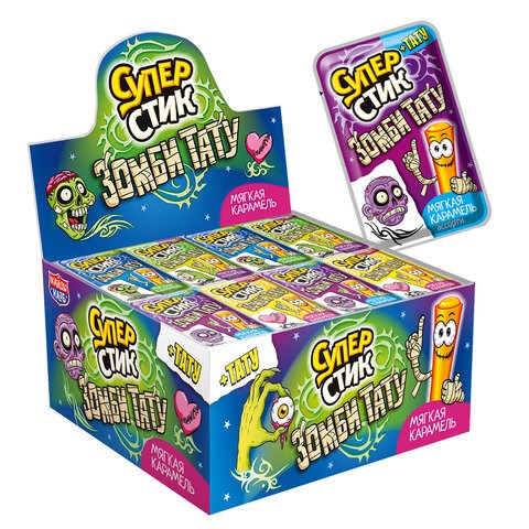 Мягкая карамель "Супер стик с тату ЗОМБИ", 5 г, КАНДИ КЛАБ, CAR132