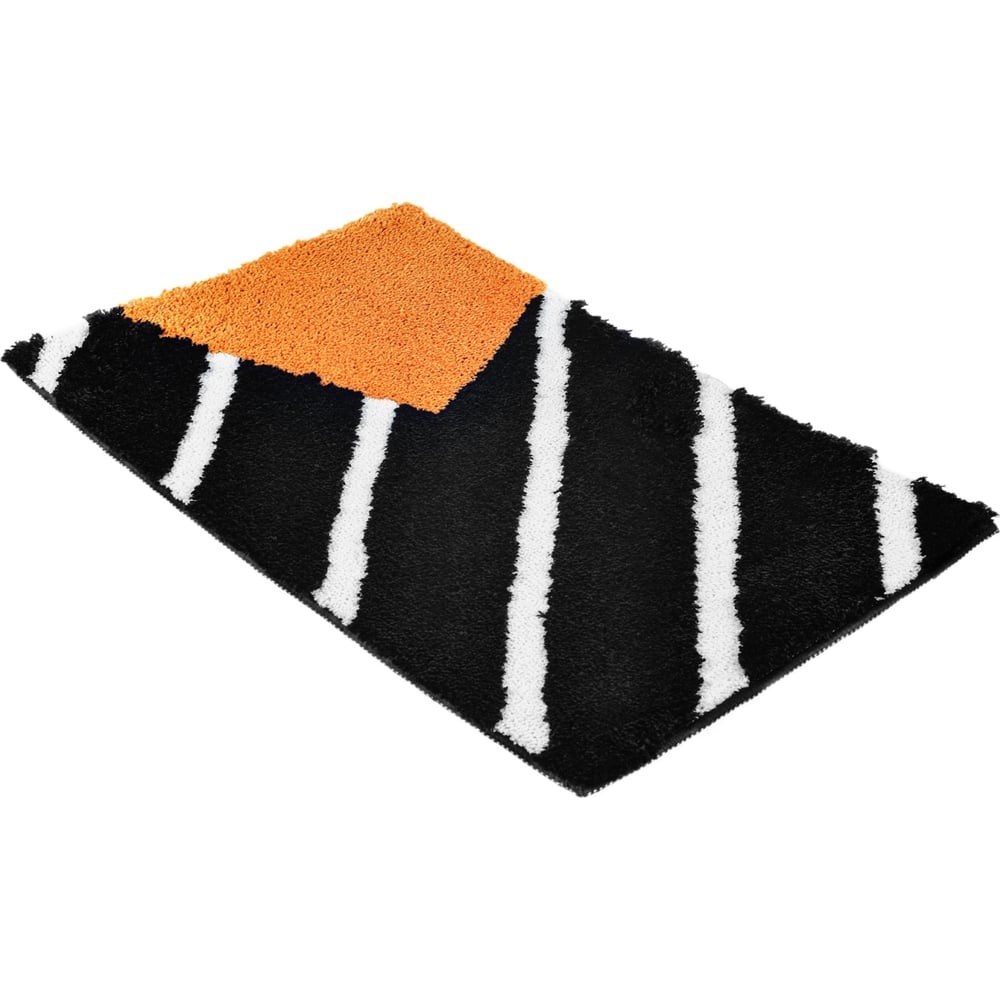 Moroshka Мягкий коврик для ванной комнаты 50х80 см Memphis A62-30 имеет геометрический рисунок в виде черно-белых полосок с желтой вставкой. Нижняя прорезиненная сторона не даст коврику скользить по полу. Прострочка края плотными нитками помогает сохранить форму. Стирать коврик рекомендовано вручную или в стиральной машине, отдельно от другого белья, в щадящем режиме при температуре до 30°C.