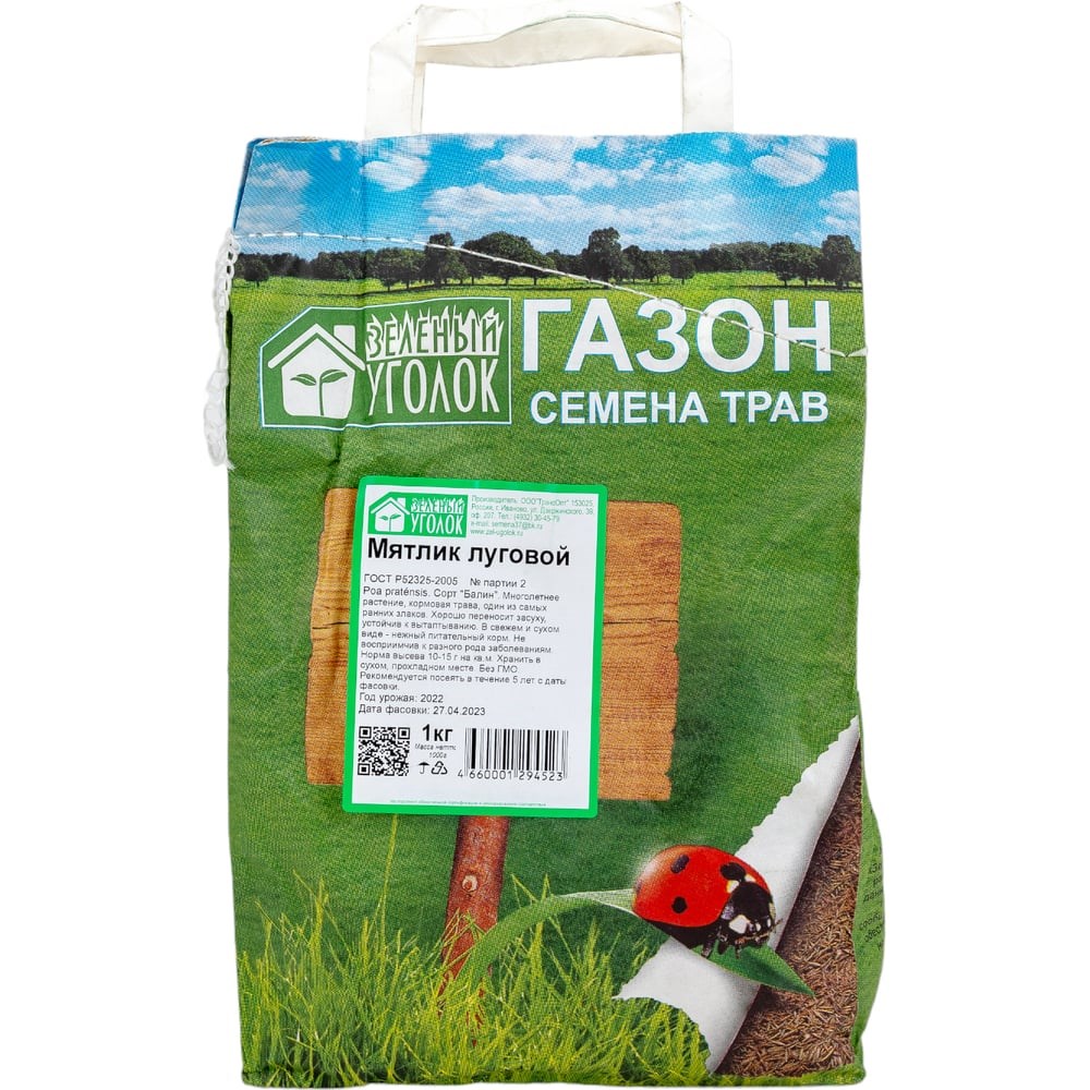 Семена Зеленый уголок Мятлик, 1 кг 4660001294523 - многолетнее растение, кормовая трава. Расти начинает ранней весной. Хорошо переносит вытаптывание. Хорошо переносит жару. Ценное растение для сухих и свежих лугов и пастбищ. Трава прекрасно приспосабливается к среде, почти не восприимчив к разного рода заболеваниям.