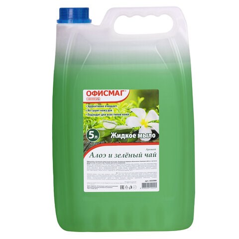 Мыло жидкое 5 л, ОФИСМАГ, "Алоэ и зеленый чай", 603086