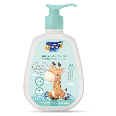 Мыло жидкое гипоаллергенное детское 265 мл, СОЛНЦЕ И ЛУНА FUN "Экстракт ромашки", дозатор, 14608