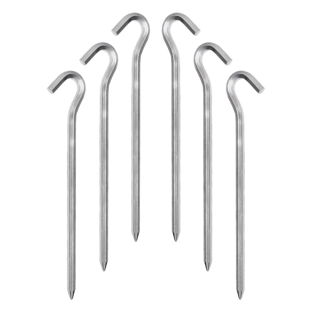 Набор алюминиевых шестигранных колышков COGHLAN'S 6шт, 18см 846MA изготовлены из высокопрочного алюминия. Легкие, не подвержены коррозии, крепко фиксируются в почве, к ним практически не прилипает грязь. Заостренный наконечник поможет легко вдавить колышек в твердую почву или глину на необходимую глубину и надежно зафиксировать палатку или тент. Удобный крючок предотвратит соскальзывание веревки и обеспечит надежную фиксацию. Шестигранная конструкция обеспечит жесткость и предотвратит деформацию колышка, что позволит палаткам, павильонам и навесам оставаться на месте даже во время ветра и непогоды. Колышки можно использовать в качестве колышков для палаток, тентов, навесов, крючков для крепления надувных лодок, сетей, брезентов, садовых скоб для грядок и оттяжки деревьев.