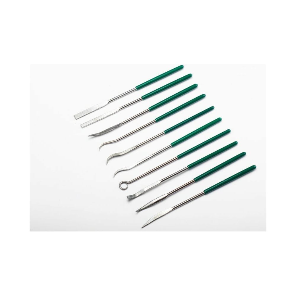 Набор алмазных надфилей Sata 10 предметов, разные виды и сечения, фигурные 03804 используется для опиловки специальных и прецизионных деталей, которые непригодны для обычных надфилей. Инструменты представляют собой отдельный подвид, который используют в основном ювелиры. Надфилями можно обработать любые округлые и изогнутые поверхности, например, золотые кольца и цепи. Надфили выполнены из высококачественного сплава, что обеспечивает прочность и долговечность. Особый мелкозернистый слой напыления профиля позволяет обрабатывать поверхности до идеального гладкого состояния.