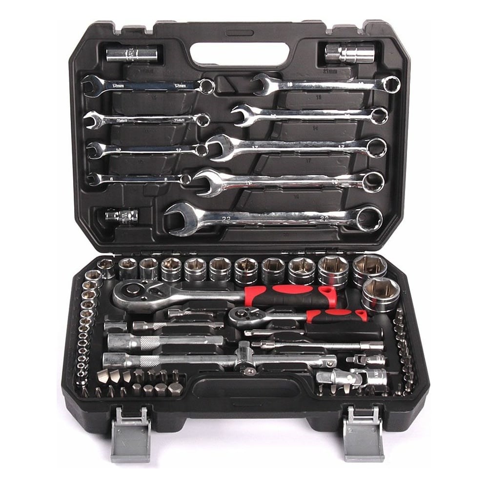 Набор автомобильного инструмента Dreamcar 82 шт. DC-000-0180211 подходит для профессионального использования в процессе ремонта неисправностей транспортных средств и других ремонтных работ. Рабочая часть всех инструментов выполнена из высокопрочной хромованадиевой и хромомолибденовой стали, что обеспечивает высокую прочность и долговечность инструмента. Рукоятки трещоток выполнены из полиэтилена ПНД высокой плотности, используемого в производстве пищевых ёмкостей и детских игрушек. Материал имеет приятную бархатистую поверхность на ощупь и минимальные выделения вредных веществ. Применение в производстве сырья высокого качества обуславливает прочность, стойкость к механическому воздействию (в том числе - ударам), долговечность и экологическую безопасность инструментов.