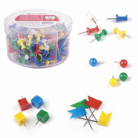 Набор BRAUBERG, силовые кнопки, 60 шт., шарики 60 шт., кубики 60 шт., флажки 60 шт., 223518