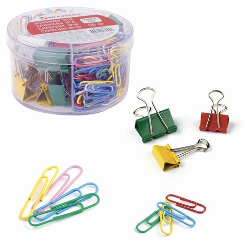 Набор BRAUBERG, зажимы 19 мм/15 шт., 25 мм/8 шт., скрепки 28 мм/152 шт. и 50 мм/50 шт., 223517