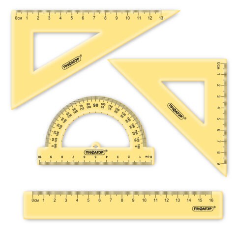 Комплектациябольшой треугольник, линейка, малый треугольник, транспортир