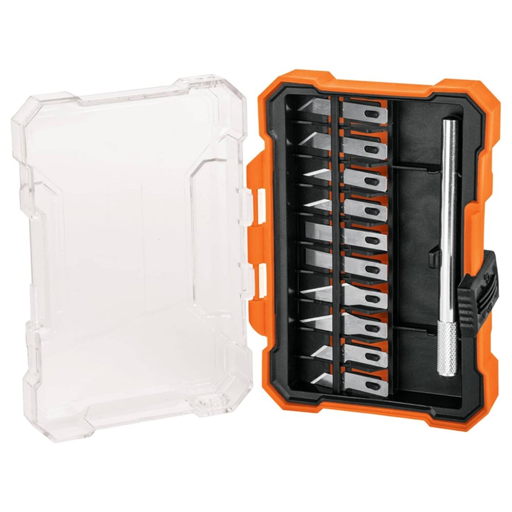 Набор декоратора Truper со сменными лезвиями 11 шт. EXA-11 17512 используется для дизайна, искусства, ремесел, макетов и хобби. Ручка держатель из алюминия комфортна при работе. 10 сменных лезвий различной конфигурации выполнены из высококачественной стали SK5 высокой прочности и надежности. Пластиковый бокс обеспечивает рациональное хранение транспортировку.