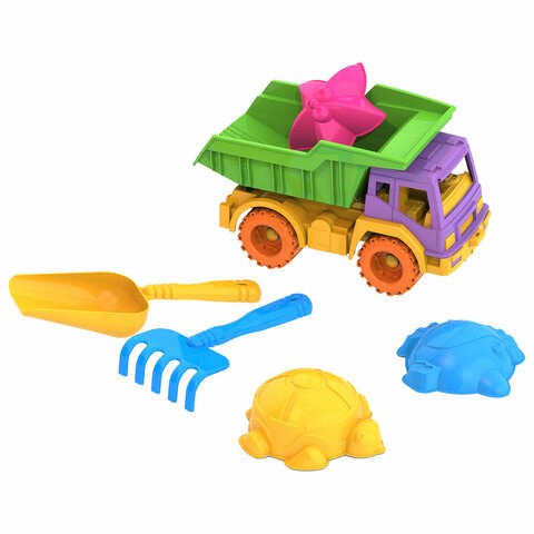 Набор для игр в песке: самосвал "Кама", совочек, грабельки, 3 формочки "Морские", НОРДПЛАСТ, 431779