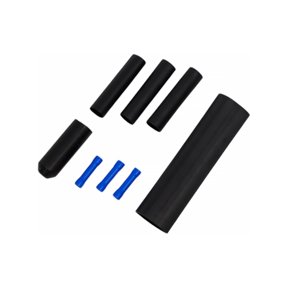 Универсальный набор REXANT предназначен для концевой заделки саморегулирующегося греющего кабеля и обеспечения герметичности его соединения с источником питания. Термоусаживаемая трубка с нанесённым внутри клеевым слоем выполняет эту функцию.Важно избегать крепления термоусадочной трубки и заглушки на кабеле при наличии влаги на нём. Для установки используйте промышленный фен или горелку. После усадки поверхность кабеля должна быть ровной, без складок и выпуклостей. Таким образом достигается необходимая герметичность, и греющий кабель надёжно защищается от проникновения влаги, пыли и других веществ.