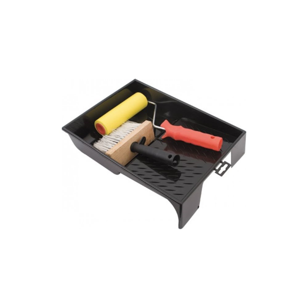 Набор для наклеивания обоев: ванночка, валик, макловица FIT РОС 03030 предназначен для промазывания и распределения клея на обои. Ванночка изготовлена из пластика, она удобна для разбавления в ней клея перед наклеиванием. Прижимной валик изготовлен из резины и оснащен удобной пластмассовой рукояткой, он используется для распределения клея на кусок обоев или на стене. Макловица с искусственной щетиной и деревянным корпусом, также может быть применена для нанесения ЛКМ на обрабатываемую поверхность.