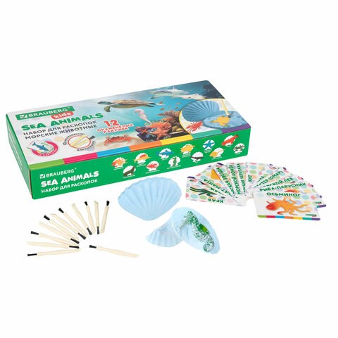 Набор для раскопок "Морские животные", 12 видов, карточки, инструменты, BRAUBERG KIDS, 665126