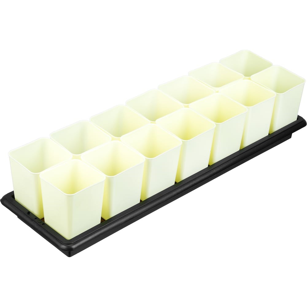 Набор для рассады Palisad 643452 состоит из 14 горшочков объемом 460 мл, с выдвижным дном, и поддона размером 600 х 185 х 45 мм. Размер каждого горшочка составляет 80 х 80 х 100 мм. Набор предназначен для выращивания молодых растений и транспортировки их к месту пересадки в открытый грунт. Преимущества Многократное применение — горшочки и поддон изготовлены из полипропилена, их можно использовать не один сезон. Эффективный отвод излишков влаги — в нижней части горшочков имеются дренажные отверстия. Удобное использование — излишняя влага стекает в поддон, поверхность, на которой размещена рассада (пол, подоконник, полка), остается сухой. Быстрая пересадка растений — каждый горшочек имеет выдвижное дно, позволяющее быстро и аккуратно извлечь земляной ком, не повредив корневую систему.
