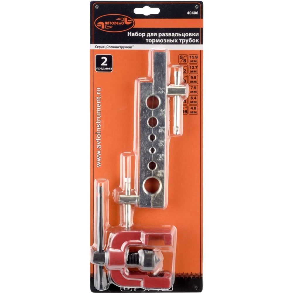 Набор для развальцовки трубок АвтоDело 4.8-15.9 мм 2 предмета 40406 10224 используют во время ремонта рулевого узла и тормозной системы автомобиля. Ключевые особенности: станок изготовлен из качественной стали методом ковки на молотах; не подвержен коррозии; выдерживает многократное использование без потери формы; подходит для трубок шести различных размеров; имеет конусную насадку; применяется для обработки элементов из меди, алюминия и мягкой стали. Набор оптимален для эксплуатации в профессиональных мастерских, на станциях технического обслуживания автомобилей и в частных гаражах.