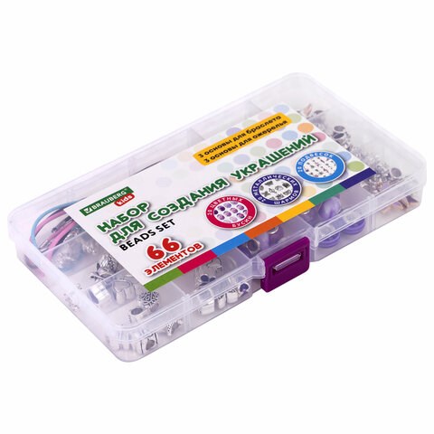 Набор для создания бижутерии и украшений 66 элементов Аметист в пластиковом боксе, бусины, шармы, BRAUBERG KIDS, 665295