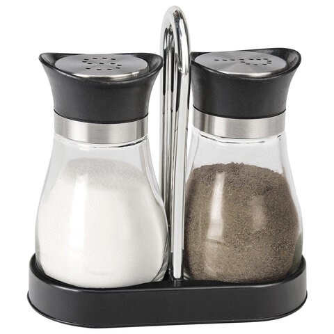 Емкость солонок выполнена из прозрачного пищевого стекла (натрий-кальций-силикатного), что позволяет видеть количество содержимого в емкости. Объем одной емкости составляет 130 мл (±5 мл). Изделия оснащены откручивающимися крышками из нержавеющей стали с элементами пластика с отверстиями, которые обеспечивают контролируемую порционную подачу специй.