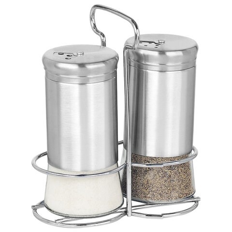 Набор для специй WEGLA представляет собой набор из двух солонок-перечниц, предназначенный для удобного хранения и дозированной подачи сыпучих продуктов, таких как соль, перец или иные специи, а также для сервировки стола. В комплект входит устойчивая металлическая подставка, которая гарантирует порядок и компактное размещение набора для специй на поверхности. Размер одной солонки составляет 12,5х5,8x5,5 см.