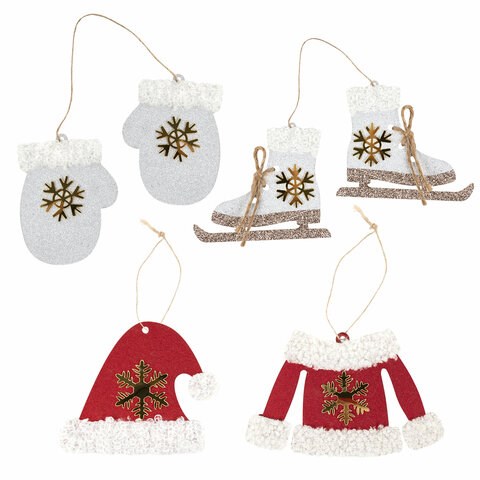 Набор упакован в полипропиленовый пакет с бумажным хедером и европодвесом. Декоративные украшения из набора могут использоваться для украшения новогодней ели или в качестве новогоднего сувенира.