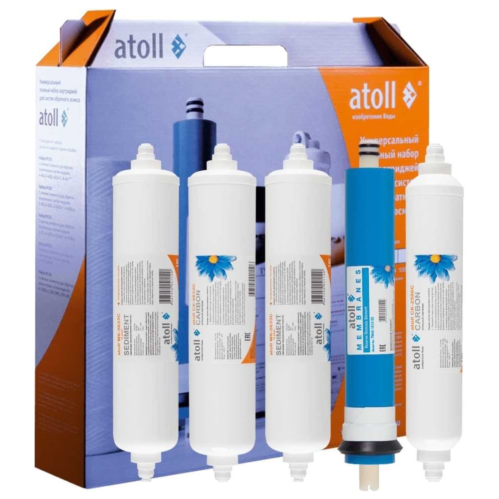 Набор картриджей atoll №106 STDA – это полный комплект сменных фильтрующих элементов для систем обратного осмоса atoll Sailboat A-550 STDA.В состав комплекта №106 STDA входят картриджи:картридж мех. очистки atoll MK-5633C 5 мкмугольный картридж atoll СК-5633Скартридж мех. очистки atoll MK-5633C 1 мкмобратноосмотическая мембрана atoll TW40-1812-50 с производительностью 50GPD (190 л/сутки)угольный постфильтр atoll СК-2586СРекомендуемая периодичность замены картриджей – 6 месяцев, мембраны – 24-30 месяцев.