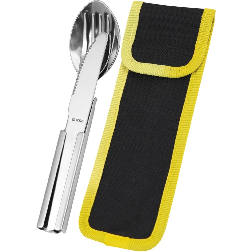 Набор Forester MOBILE ложка, вилка, нож, открывалка (16-18 см), в чехле, из нержавеющей стали MC-7 – компактный набор столовых приборов предназначен для приема пищи на рыбалке, охоте, в походе и при других видах активного отдыха. Приборы изготовлены из высококачественной нержавеющей стали 420, имеют большой удобный размер, 16.5-18.5 см. Благодаря конструкции, ложка, вилка и нож убираются в ручку-открывалку и фиксируются в ней. Набор укомплектован чехлом из плотного полиэстра.