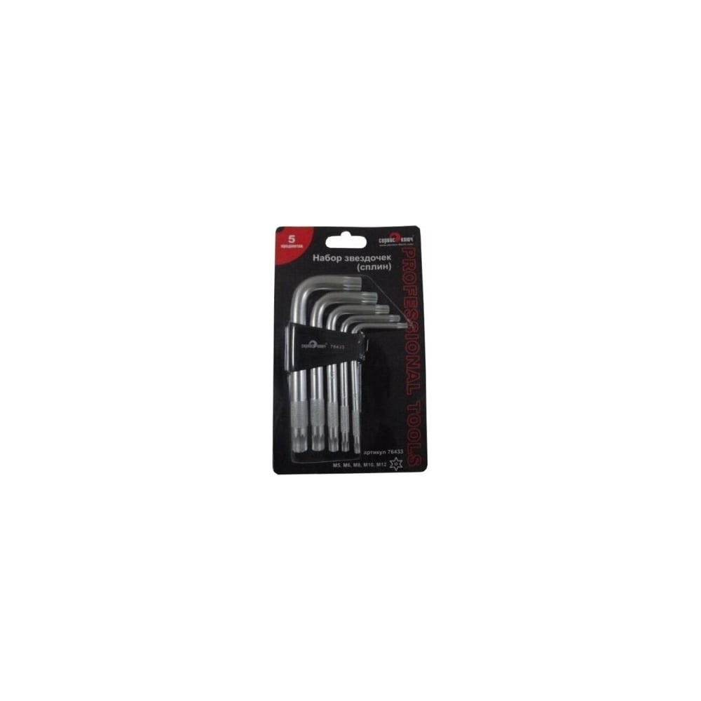 Набор Г-образных звездочек сплин 5 предметов СЕРВИС КЛЮЧ PROFFI 76433 - качественный инструмент, при помощи которого можно монтировать, демонтировать или затягивать крепеж. Специальный держатель облегчает транспортировку.