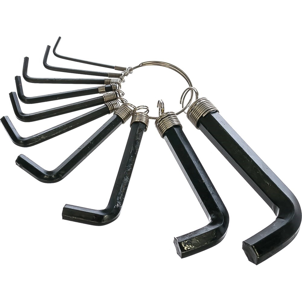 Набор имбусовых ключей на кольце 10шт., 1,5-10 мм SPARTA 112665 - это комплект шестигранных г-образных ключей, который предназначен для работы с крепежом, оснащенным внутренним шестигранным профилем. Данные ключи изготовлены из углеродистой стали, а твердость рабочей части 56-60 HRc.