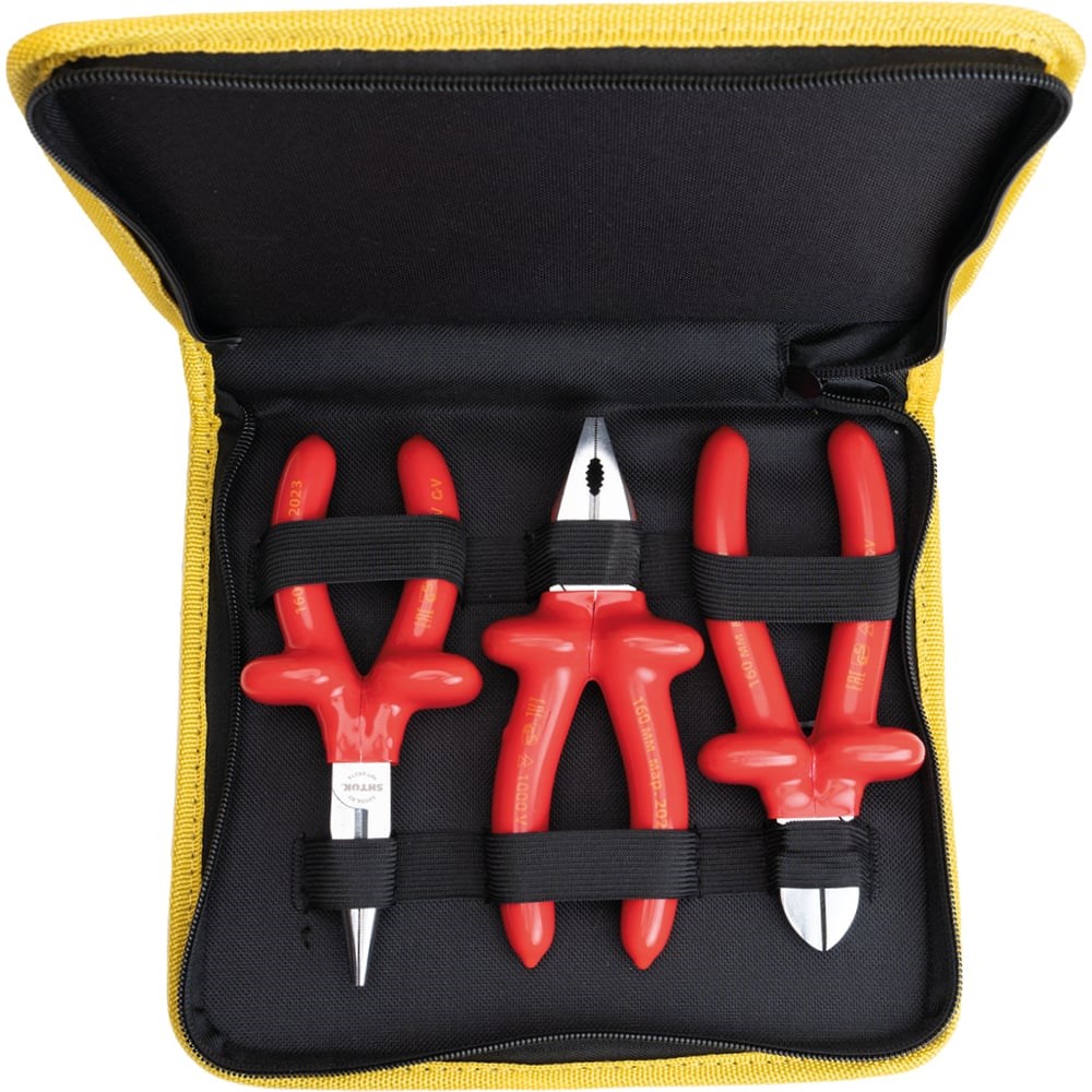 Набор диэлектрического инструмента позволяет работать с проводами и кабелями под напряжением до 1000В. Ручки с диэлектрическим покрытием из двухслойного материала обеспечивают безопасность и комфорт в работе. Рабочие части инструментов изготовлены из хромомолибденовой стали. Для хранения и транспортировки инструменты комплектуются пеналом.