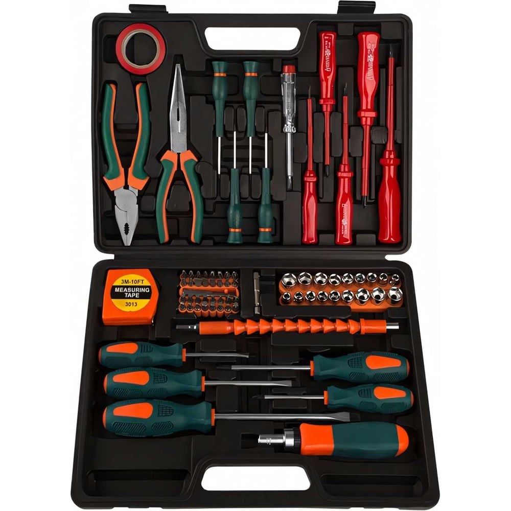 Набор инструментов STURM 1310-01-TS7 включает в себя ряд разнофункциональных ручных инструментов в пластиковом кейсе. В наборе подобран необходимый ручной инструмент для ремонтных работ в доме и в мастерской. В комплект входят инструменты для крепежа, монтирования, плоскогубцы для работ с электропроводкой и другие инструменты.