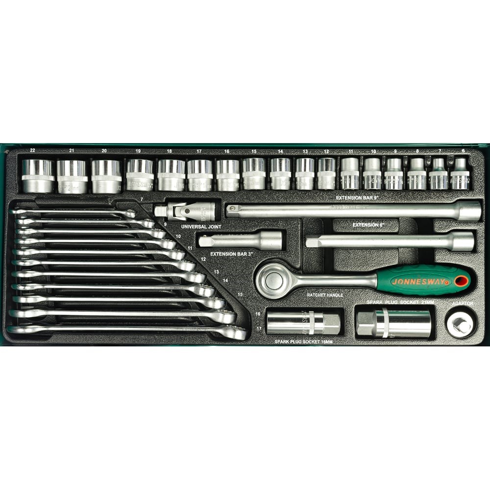Набор торцевых головок и комбинированных ключей Jonnesway S04H3536S состоит из 36 предметов. Используется для монтажных, демонтажных, слесарных работ при производстве, ремонте автомобилей и другой техники. В комплект входят торцевые головки с размером посадочного отверстия - 3/8", приводы вращения, комбинированные ключи. Все что нужно для удобной, качественной работы с крепежом различного профиля и слабонагруженными резьбовыми соединениями.