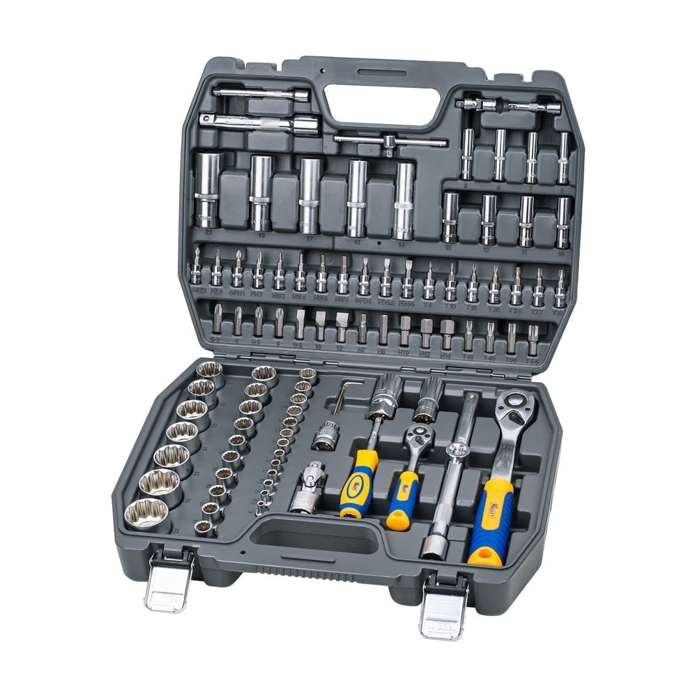 Набор инструмента 1/2 Dr и 1/4 Dr 94 предметов с 12 гранными головками KRAFT KT 700682 обеспечивает удобство работы с крепежом. Наличие шестигранных головок делает более безопасным монтаж и демонтаж автомобильных болтов. Комплект можно использовать в качестве автомобильного или слесарного инструмента в мастерской. Большое количество бит и дополнительных вставок существенно упрощает работу с крепежом в автомобиле, электронике и различных конструкциях. Свечные головки, удлинители и карданы значительно увеличивают функциональность комплекта.