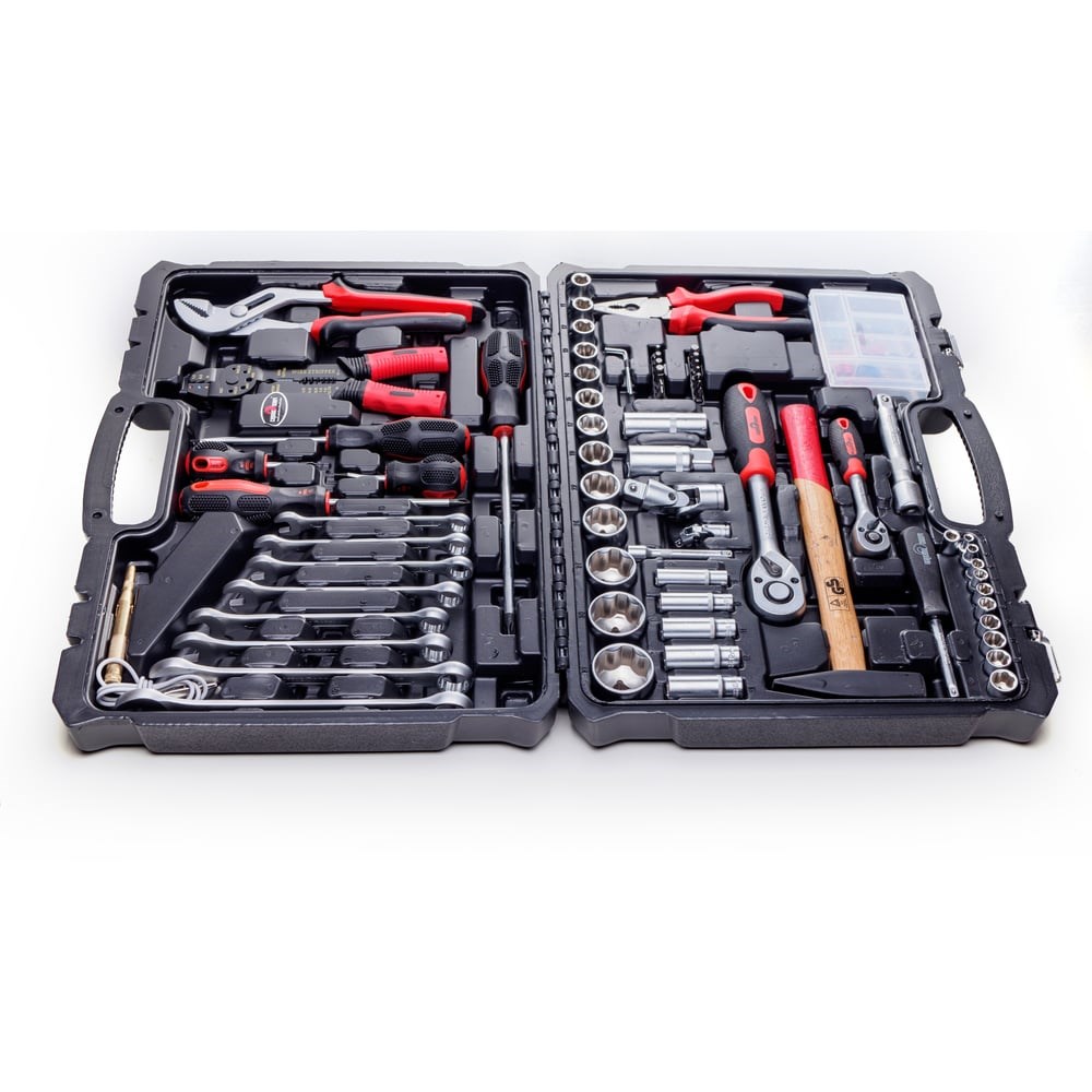 Набор инструмента СЕРВИС КЛЮЧ 99 предметов 11099 представлен в расширенной комплектации и включает в себя самые популярные типоразмеры бит, головок и ключей. Эргономичная форма рукояток обеспечивает надежный захват для уверенной работы. Набор поставляется в кейсе, где каждый инструмент имеет свое отделение. Это обеспечивает удобный поиск необходимой модели.