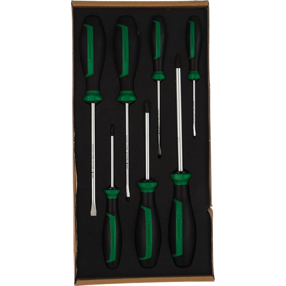 Набор отверток Stahlwille 96838278 предназначен для отворачивания и заворачивания резьбового крепежа, имеющего крестовой или плоский шлиц, при монтажных и ремонтных работах. Черный наконечник обеспечивает плотное прилегание рабочих поверхностей, что уменьшает возможность повреждения шлица и максимальную передачу усилия на головку крепежа. Упоры на рукоятках не позволяют руке соскользнуть в сторону детали, благодаря чему повышаются удобство и безопасность работы. Поставляется во вкладыше TCS.