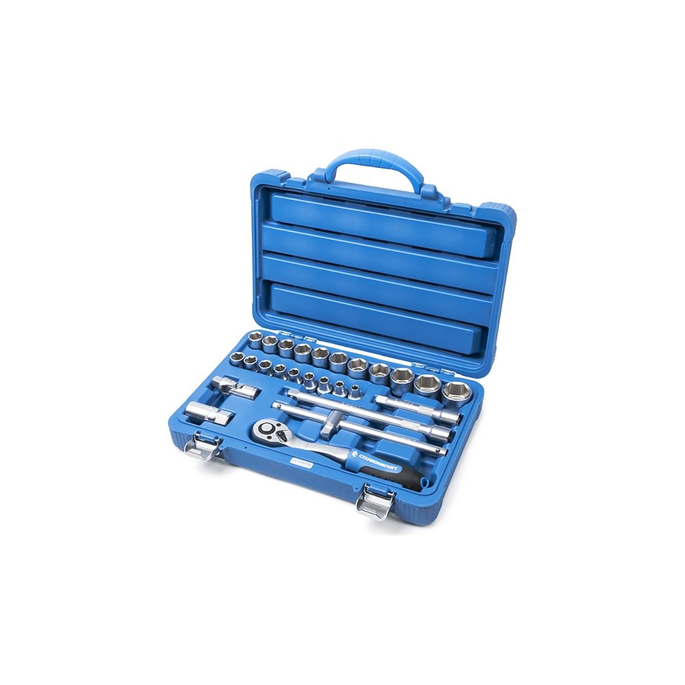 Набор инструментов Станкоимпорт на 1/2" 26 предметов CS-4026PMQ может использоваться для работы с резьбовыми соединениями. Каждое изделие изготовлено из качественной стали, обладающей прочностью и долговечностью. Трещоточный ключ оснащен двухкомпонентной рукояткой, которая не скользит в руке и способствует более комфортной работе. Набор хранится и транспортируется в прочном кейсе, где каждый инструмент имеет свое место.