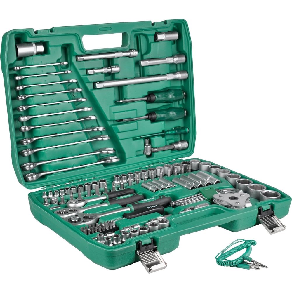 Набор инструментов выполнен из специальной комплексно легированной стали с повышенным содержанием углерода. Прочные металлические замки и эргономичный ударопрочный кейс делают набор головок с трещоткой эффективным и мобильным. Благодаря удачно подобранной комплектации набор подойдет для большого количества различных задач, существенно снижает зависимость от стороннего инструмента и позволяет эффективно работать, не прибегая к дополнительным комплектам.